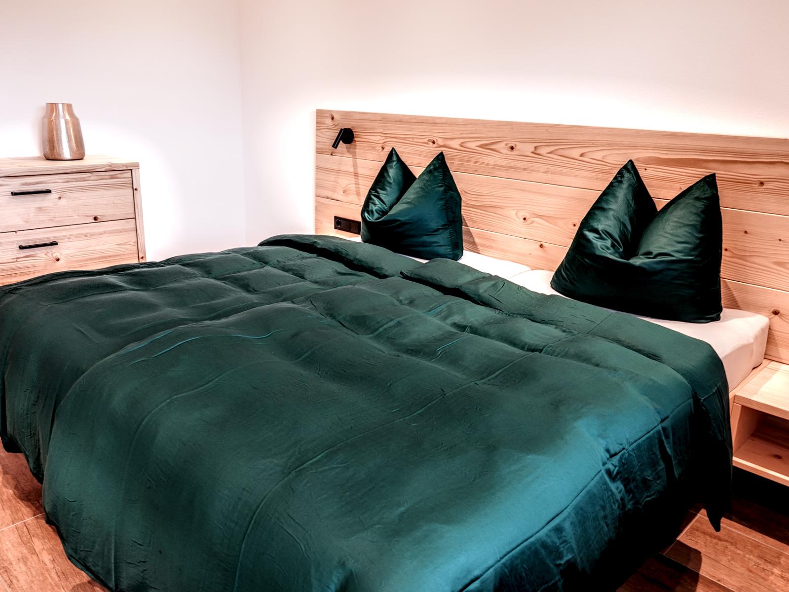 Unsere Wohnungen vereinen praktische Schlichtheit und Gemütlichkeit. Die durchdachten und schreinergefertigten Vollholzmöbel stammen aus dem eigenen Forstbetrieb. Der dezente Einsatz modernster Technik erhöht den individuellen Komfort unserer Gäste. Ihr kommt als Großfamilie? Dann findet ihr an unseren Essplätzen für bis zu 10 Personen gemeinsam Platz.